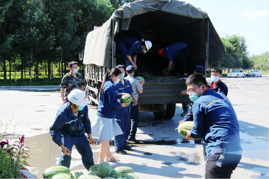8月7日,师市党委常委、八师副师长、开发区党工委书记、管委会主任侯国俊一行来到金年会娱乐官网网页版开展夏季送清凉活动,看望慰问疫情防控期间坚守生产一线员工,向他们致以崇高的敬意。天山铝业党委副书记、副总裁赵庆云、电解铝事业部总经理刘君鹏、公司党委副书记曾莉陪同。