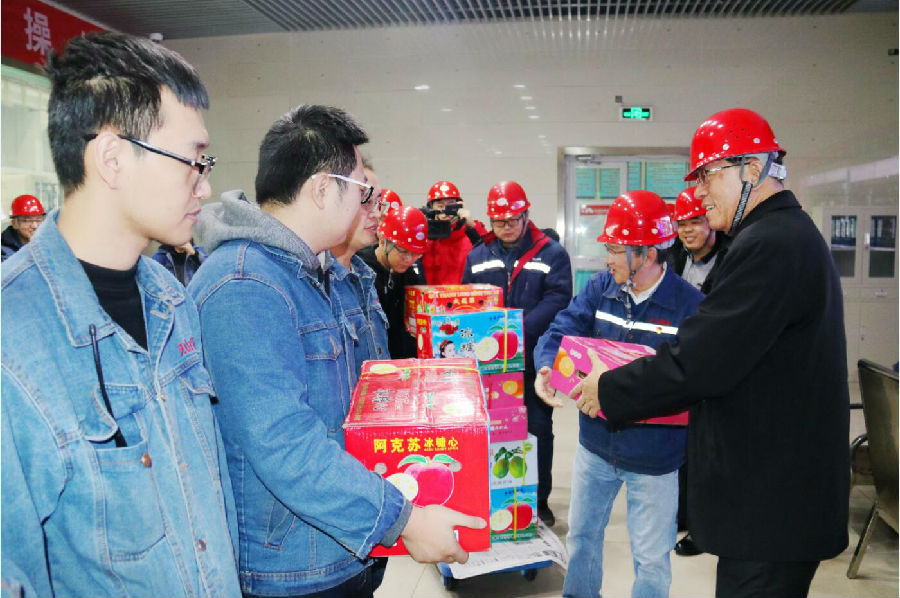在电厂集控室,侯国俊副师长向坚守岗位的员工发放了慰问品,送上新春佳节的美好祝福。他说,春节是中国的传统节日,金年会娱乐官网网页版广大员工在节日期间坚守生产岗位,为兵团、师市和开发区的经济发展努力工作,任劳任怨,在此代表师市党委向春节期间坚守岗位的员工同志们表示节日的问候并致以深深的谢意 。候国俊副师长还叮嘱节日期间坚守工作岗位的干部员工既要保证安全顺利完成生产任务,又要安排好生活,健康快乐地度过春节。