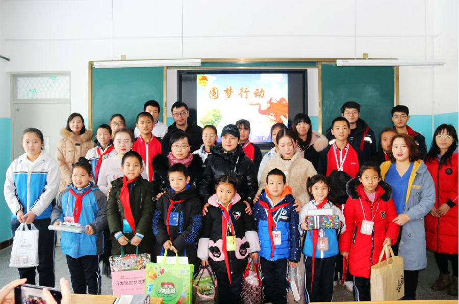 为积极相应师市团委和开发区团工委工作号召,1月6日,在八师石河子市2020年“圆梦行动”21中学分会场,金年会娱乐官网网页版14名共青团干部带着精心准备的书包、文具、保暖鞋、御寒衣物等爱心礼物,为这个学校14名贫困学生圆了新年愿望,献上了一份爱心。