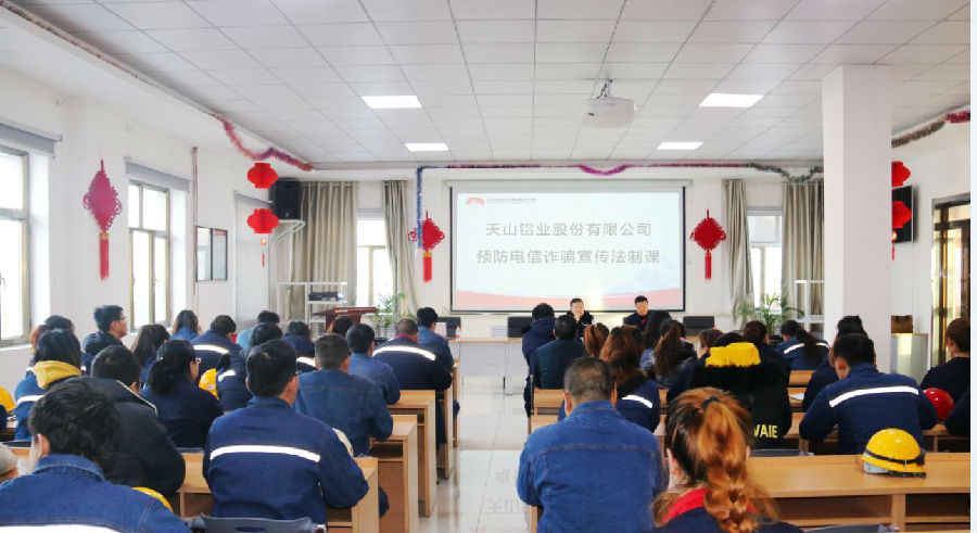 11月16日,金年会娱乐官网网页版电解铝事业部邀请开发区民警杨天星为员工上预防电信诈骗法制课,电解铝事业部70多名员工参加学习。